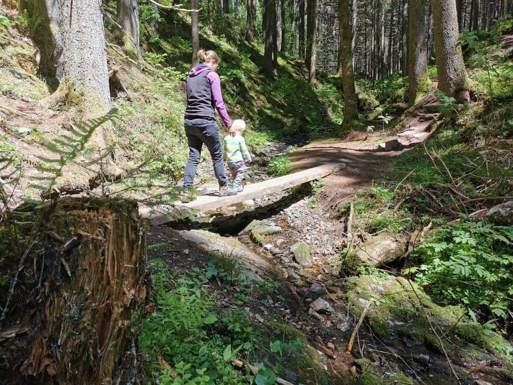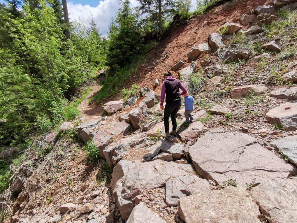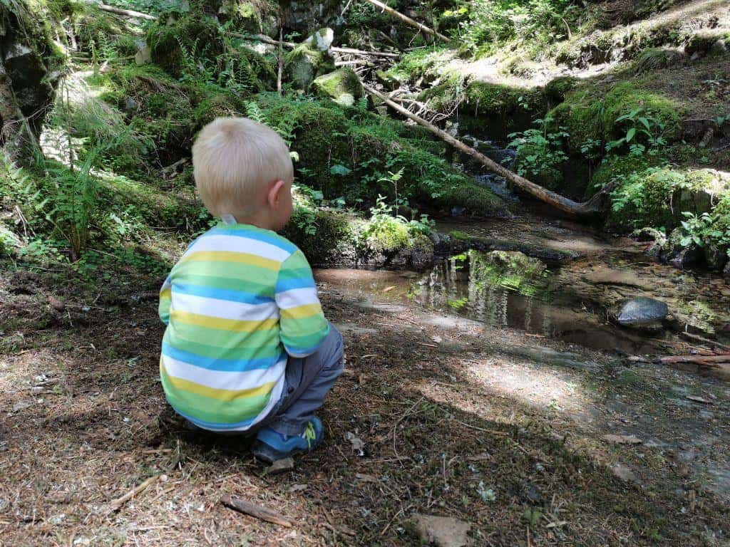 Startpunkt des Kinderwanderwegs ist der Wanderparkplatz Hardt. Von dort geht’s hinab in die Rötenbachschlucht, vorbei an der Granitwand schlängelt sich der schmale Pfad entlang des Rötenbachs. Der Rötenbacher Ameisenpfad erklärt bei 10 Stationen interessantes auf Kindgerechten Infotafeln.