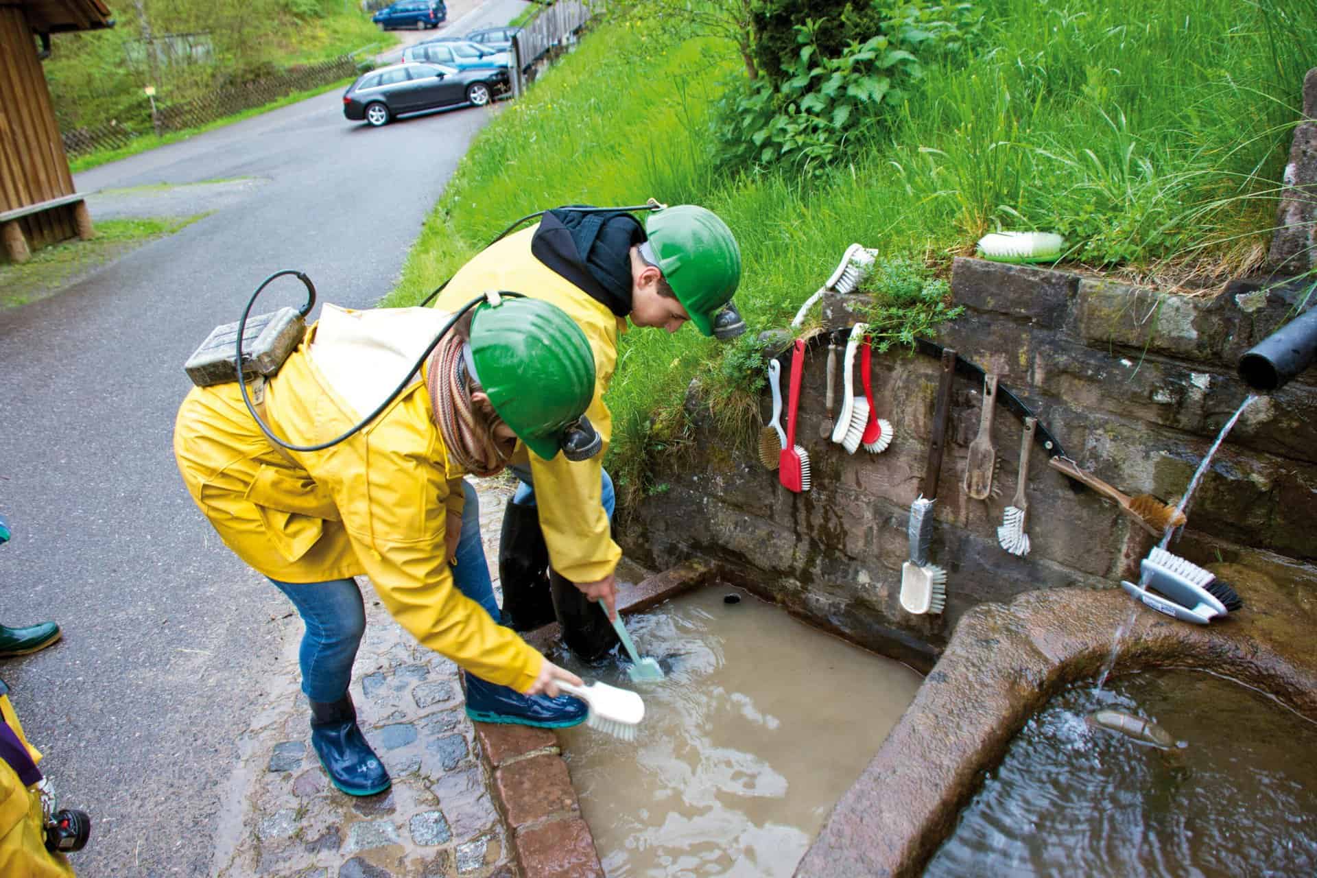 Nach der Führung gehört natürlich auch das traditionelle Stiefelwaschen am Brunnen zum Besuch dazu.