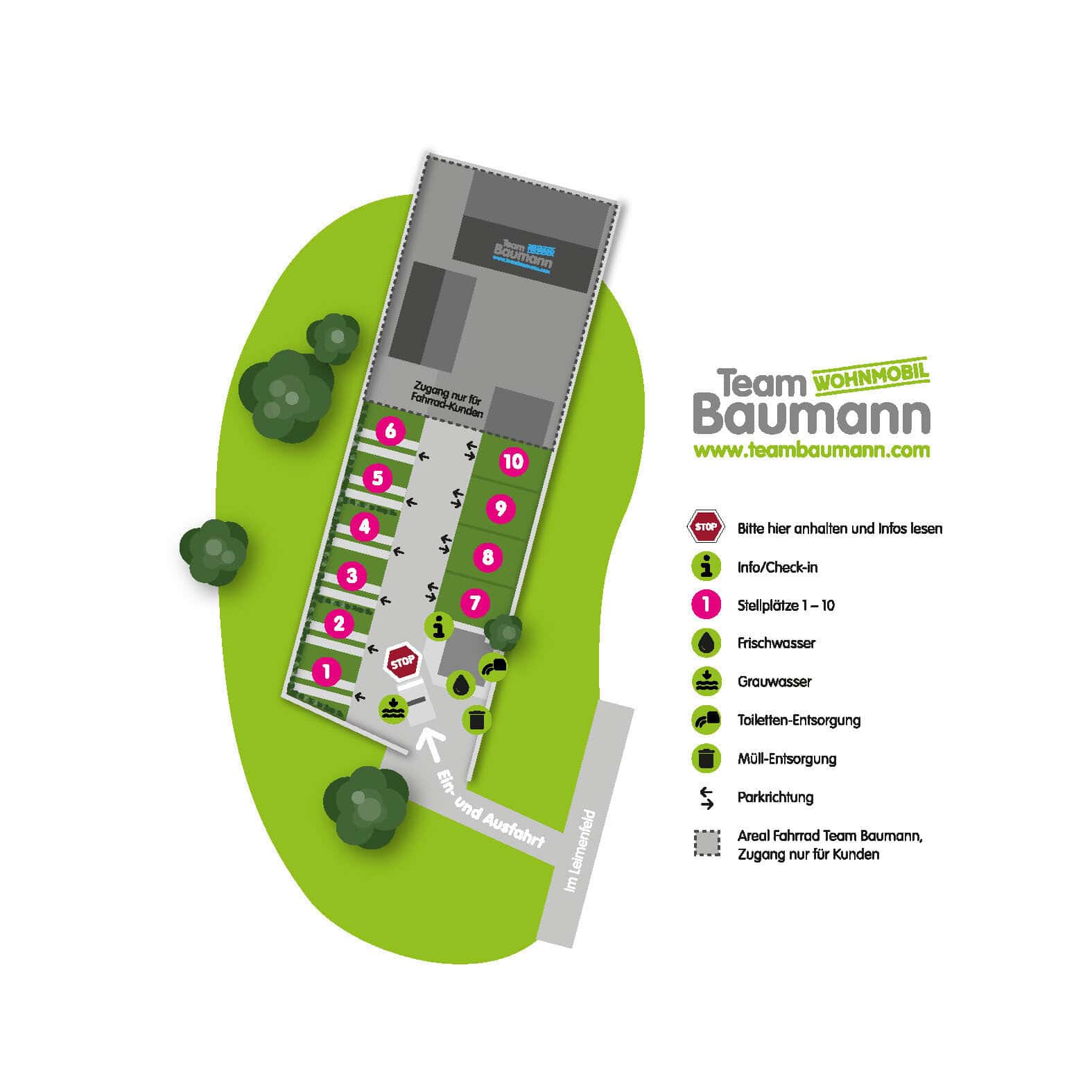 Der Stellplatz von Team Baumann ist eine weitere attraktive Option für Wohnmobilisten:
