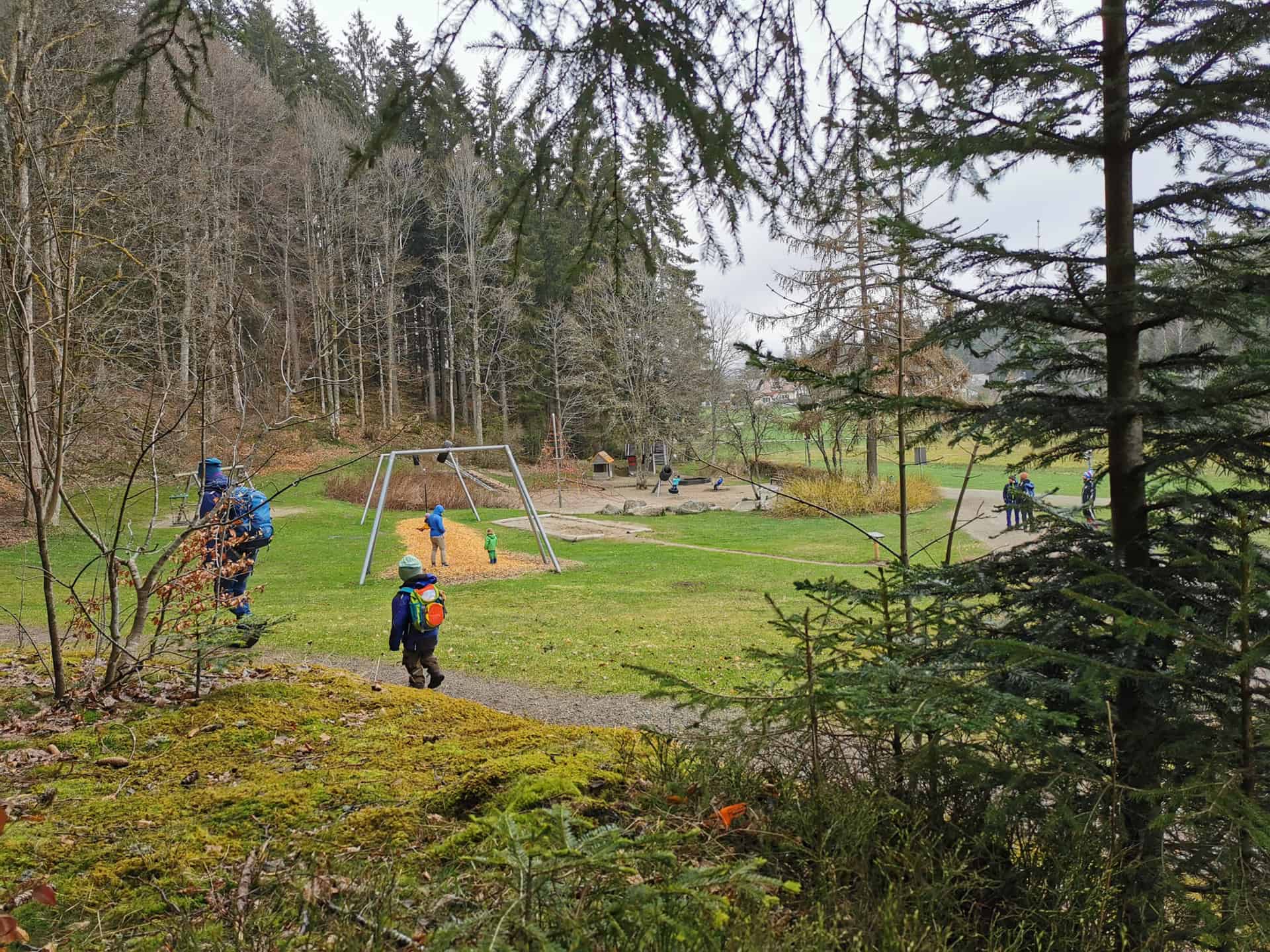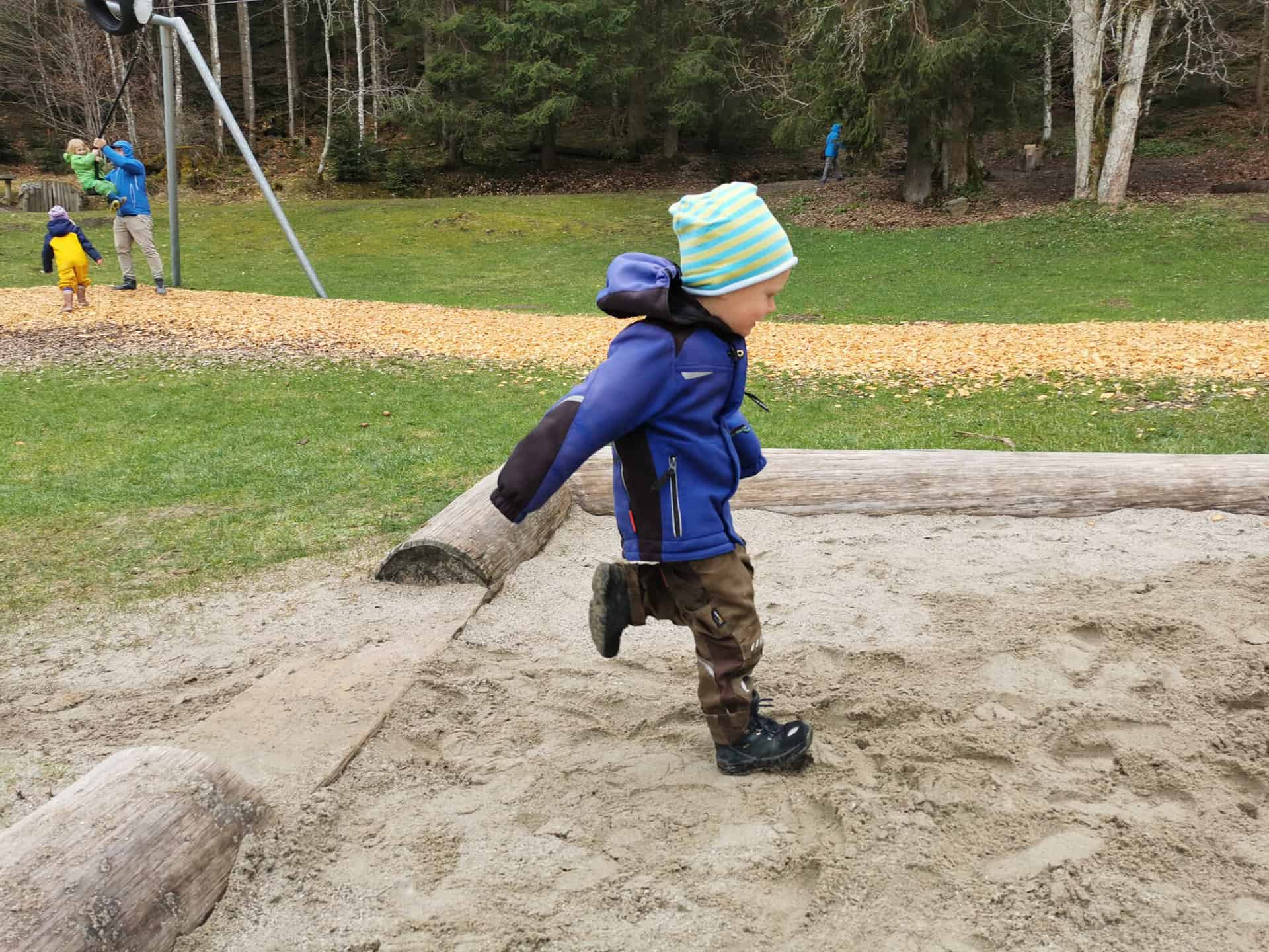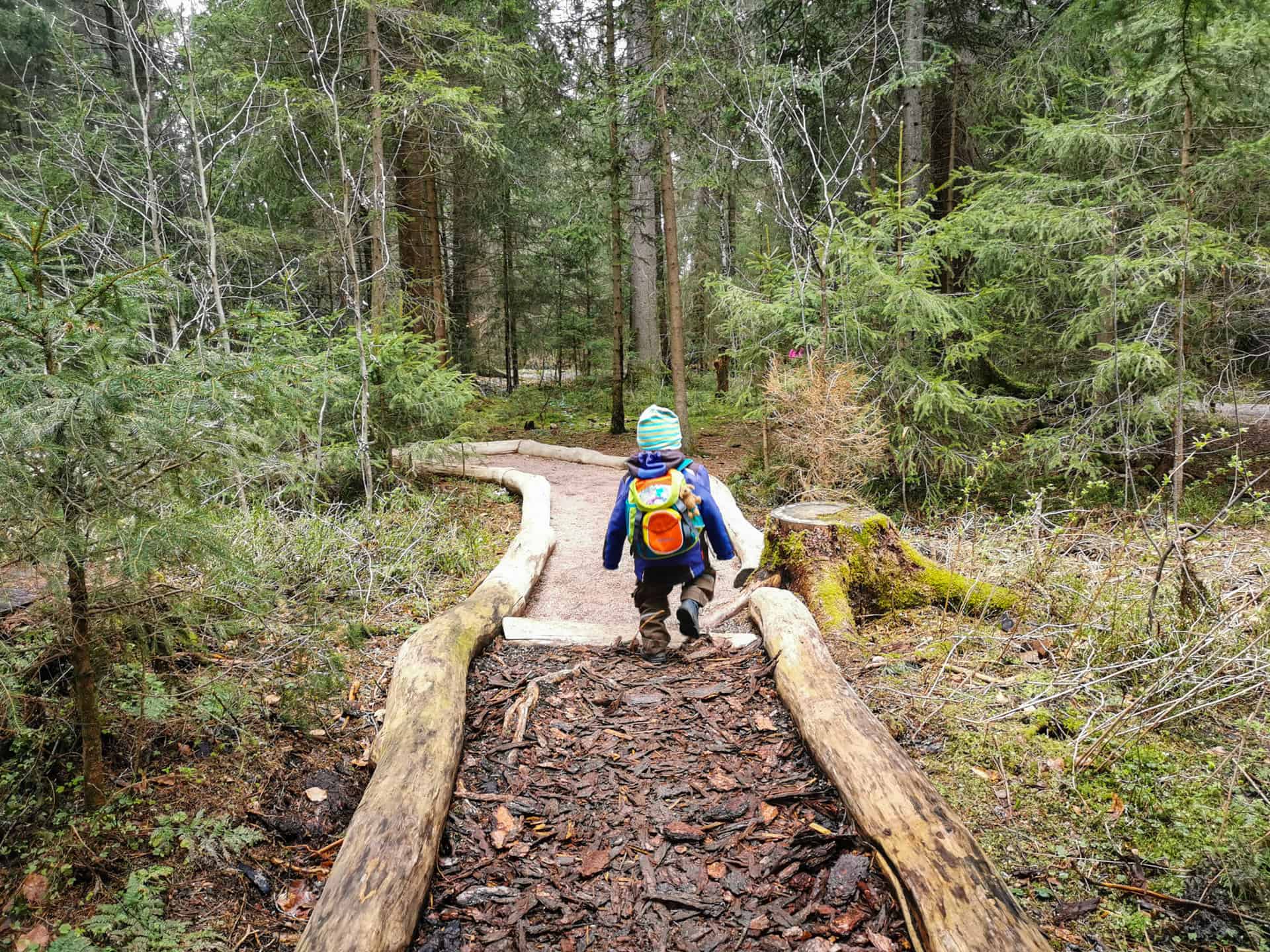 Die ersten 1,5 Kilometer mit den ganzen Erlebnisstationen ist mit einem Kinderwagen befahrbar. Auf dem zweiten Teil des Erlebnispfades wirds mit dem Kinderwagen schwierig, dieser verläuft auf teilweise schmallen Trampelpfaden.