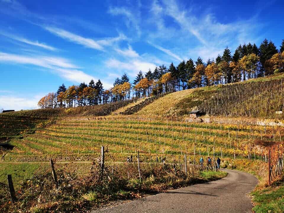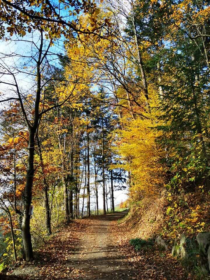 es bergauf, immer geradeaus, am Sportplatz vorbei. Der „Schlauli“-Wegweiser führt dich nach links am Waldrand und den Reben entlang zum eigentlichen Beginn des „Wunderfitzpfades“, der oben auf dem Mühlberg am Flurkreuz rechts im Wald beginnt. Bitte folgt immer dem „Schlauli“-Wegweiser, dass sich niemand verlaufen kann.